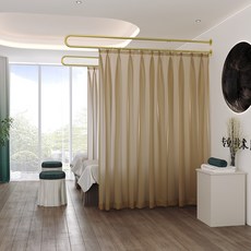 피부 마사지 커튼 파티션 병원 공간분리 피부관리실, U자형길이2.3미터금막대+고리+커피색실
