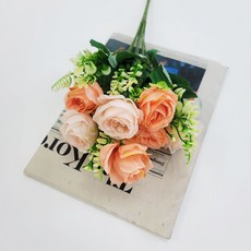 장미꽃 조화 인테리어 부쉬 꽃다발 부케 9송이, 피치, 1개