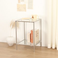 JNCP 모듈 미니협탁 보조 테이블 가구 선반 소파 2단 미드센추리 침실 침대 거실 철제 투명 유리 이동, 스텐, 기본유리(1)+블루(1), 1개