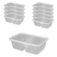 휴고잉 투명 내열 2칸 사각용기B 본체 10p + 뚜껑 10p 세트 1000ml, 10개, 1세트