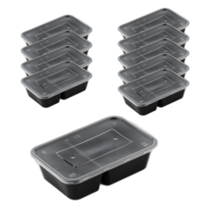 황씨네도시락 PP내열도시락 2칸 본체 10p + 뚜껑 10p + 블랙띠지 10p, 1세트