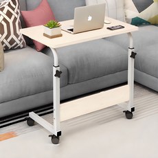 Unihome 프리미엄 높이조절 이동식 사이드 테이블 다용도 컴퓨터 책상, 우드