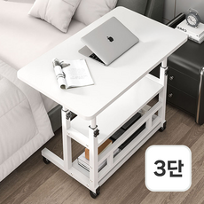 내일내꺼 높이조절 이동식 사이드 테이블 3단 80*40CM, 화이트
