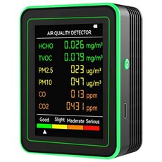 미세먼지측정기 9 In 1 온도 습도 Co2 미터 공기질 검출기 PM2.5 PM10 HCHO TVOC CO CO2 AQI 백라이트 LCD 컬러 디스플레이 측정기, Black, 1개, Black
