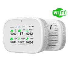 스마트 공기질 측정기 CO2/온도/습도/포름알데히드/TVOC 감지기, 1개, 화이트