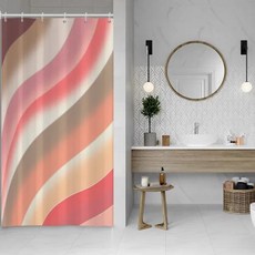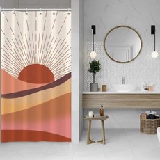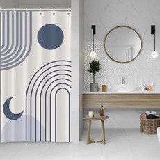 욕실파티션 샤워부스 칸막이 북유럽 샤워 커튼 간단한 기하학적 욕실 장식 파티션 라운드 라인 소박한 홈 방수 후크 90x180, 14) YTS06343 - W90xH180cm