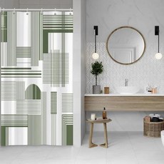 욕실파티션 샤워부스 칸막이 북유럽 샤워 커튼 간단한 기하학적 욕실 장식 파티션 라운드 라인 소박한 홈 방수 후크 90x180, 3) YFX11759 - W90xH180cm