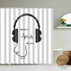 욕실파티션 샤워부스 칸막이 음악 샤워 커튼 컬러 악기 노트 리듬 노래 방수 욕실 걸이식 파티션 천 후크 포함, 14) 2 - W120xH180cm