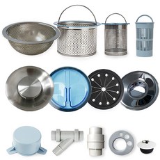 배수구 커버: 배수구를 덮고 보호해주는 부품으로, 싱크대 위에 설치됩니다. 스테인레스 스틸이나 플라스틱으로 제작되며, 싱크대의 디자인과 잘 어울리도록 설계되어 있습니다.