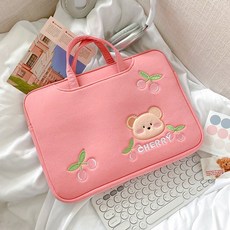 [레이블링]예쁜노트북가방 손잡이 14인치 15인치 16인치 lg그램노트북가방 삼성노트북가방 14인치 15인치 노트북파우치 여성노트북가방 태블릿가방 노트북케이스 아이패드프로케이스, 체리 곰돌이