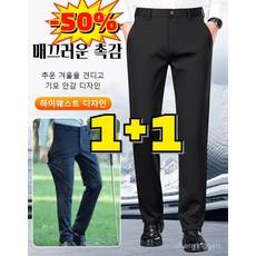 1+1 [24년 신형] 일자핏 비즈니스 정장 바지 하이웨스트 허리 밴딩 기모 양복 바지 빅사이즈 스판 캐주얼 3colors