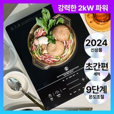 [가스유해없는] 1구 인덕션 타이머 고속가열 전기레인지 / 세라믹글라스 9단계, 단일컬러