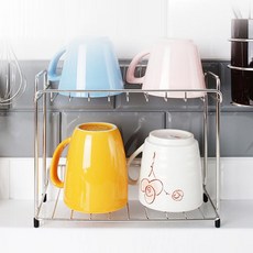 탕비실 미니 스텐 컵건조대 2단 정리대 홈카페 주방 좁은 슬림 1인 소형, H-테이블선반 (소)