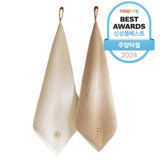 데코뷰 스마일 플라워 자수 핸드타올 60g, 내츄럴화이트 + 베이지, 2개