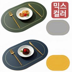 캘리웨이브 론드 양면 식탁매트 세트 북유럽 가죽 방수 식탁 테이블 매트, 그린 + 그레이, 45 x 30 cm, 4개