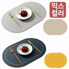 라데코 라운드 프레임 방수 양면 식탁매트 4p, 라이트그레이,베이지,네이비,옐로우, 45 x 30 cm, 1세트