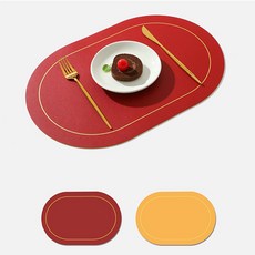 캘리웨이브 론드 양면 식탁매트 세트 북유럽 가죽 방수 식탁 테이블 매트, 레드 + 옐로우, 45 x 30 cm, 4개