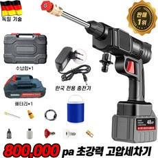 휴대용 가정용 세차 물총 충전식무선고압세차기 셋트, 1세트