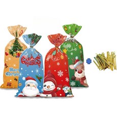 플렉시데코 크리스마스 캔디 간식 선물 포장 OPP 봉투 50매, 1개, 해피크리스마스 4종 랜덤