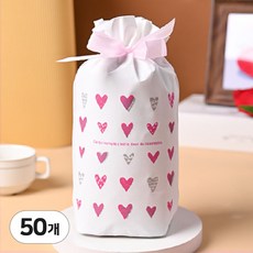 구디백포장지 간식 과자 리본 포장주머니 선물 봉투 비닐백, 하트, 50매