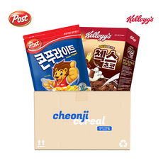 시리얼 2종 켈로그 첵스초코 570g 1개 + 포스트 콘푸라이트 600g 1개, 1170g, 1세트