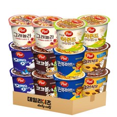 [데일리이츠] 포스트 시리얼컵 6종 12개(콘푸라이트 + 오곡코코볼 + 오레오 + 아몬드후레이크 + 그래놀라크랜베리 + 크리치오), 1세트, 30g