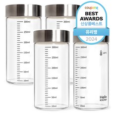 헬로키친 내열유리 눈금 유리병, 300ml, 4개