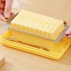 뚜껑이 있는 스테인리스 커팅 버터 수납 케이스 버터 보관 케이스, 라지, 1개, 노랑색