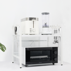 연구하다 전자레인지 선반 2단 높이 너비조절 (사은품 후크걸이 6개 증정), 화이트