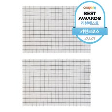아리코 심플 체크 면 키친크로스, 화이트 B, 2개