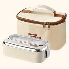 직장인 스텐 보온 도시락통 전자레인지 수능 도시락 소풍 2단 가열 도시락 가방 세트, 아이보리1단, 1개