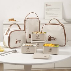 도시락통 전자레인지 전용 보온가방 포함 가을 여행 피크닉 직장인 학생용, 3개, 화이트