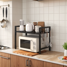 코멧 길이조절 전자레인지 선반 2단 + 후크 6개, 블랙