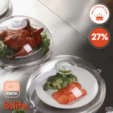 에스티리빙 전자레인지 푸드 커버 덮개 음식덮개 완전투명 손잡이, 고투명 와이드형, 1개, 26cm