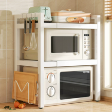 코멧 길이조절 전자레인지 선반 2단 + 후크 6개, 화이트