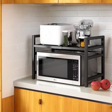 행복의모든것 넓이 높이 조절 전자레인지 선반, 블랙, 1단