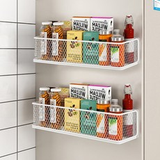 Allilio 냉장고 자석 선반 강력 강한 하중 주방 양념병 수납 선반 수납 간편 냉장고 사이드랙, 화이트