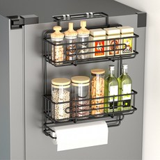 Allilio 냉장고 자석 선반 강력 강한 하중 주방 양념병 수납 선반 수납 간편 냉장고 사이드랙, 블랙