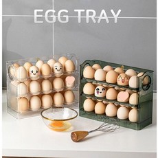 일상생활 오토폴딩 계란 트레이 3단 보관함 30구 냉장고 자동 오픈, 그린, 1개