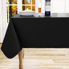 homing 호밍 직사각형 비닐 식탁보 방수 유출 방지 플라스틱 플란넬 뒷면 식탁용 물티슈 클린 테이블 커버 뷔페 파티 및 캠핑용블랙 60인치 x 84인치, Black, 60" x 120", 1개