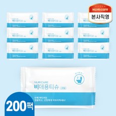 일회용 비데티슈 1매 물에녹는티슈 개별포장 위생 청결 화장실 변기 청소 휴대용 선물용 물티슈 티슈, 200개