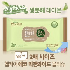 [1+1] 물티슈 2배크기 빅앤와이드 생분해 10매 빅사이즈 헬케어 에코 레이온, 2개