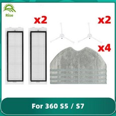 치후 360 S5 / S7 로봇 진공 청소기 예비 부품 세척 가능 Hepa 필터 메인 브러시 사이드 걸레 천 교체 액세서리 로봇청소기 스페어 파츠, 세트 A, 1개