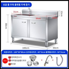 스텐 미니 싱크대 씽크대 보조 미니싱크대 일체형 사무실 소형, 8 업그레이드 100 x 50 x 80 단일 슬롯 오른