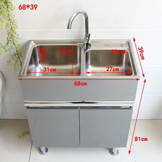 스테인리스 싱크대 간이 미니 소형 셀프 주방 개수대 세면대 캠핑장 이동식 싱크 일틸, 두께강 68*4트 2