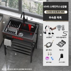 [국내배송] Device 가정용 간이 스테인리스 싱크대 휴대용 주방싱크대 업소용 싱크대 10종 세트 78*76*43, 냉수전용수전, 1개
