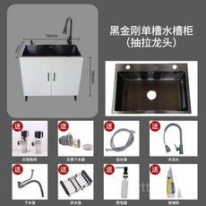 [국내배송] dulandQ 주방싱크대 간이싱크대 씽크대 스텐 싱크대 업소용싱크대 개수대+냉온수 수전 냉수전송수전 가능 78*43*76cm, 냉온수 수전, 1개