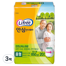 라이프리 남녀공용 안심 언더웨어 성인기저귀, 중형, 20개입, 3개