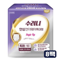 수려니 프리미엄 안심 언더웨어 특대형 (팩수 선택) 스타일업 릴리프 성인용기저귀, 8개, 10매입